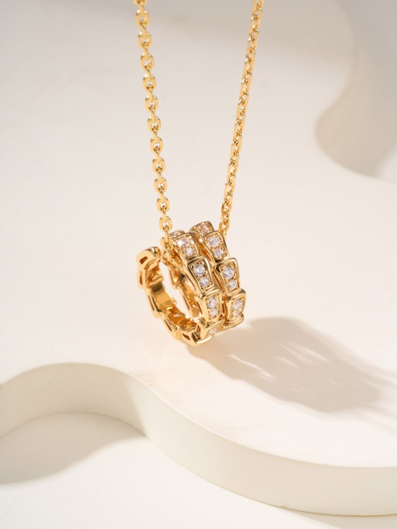 Bulgari snake bone full diamond necklace-3795