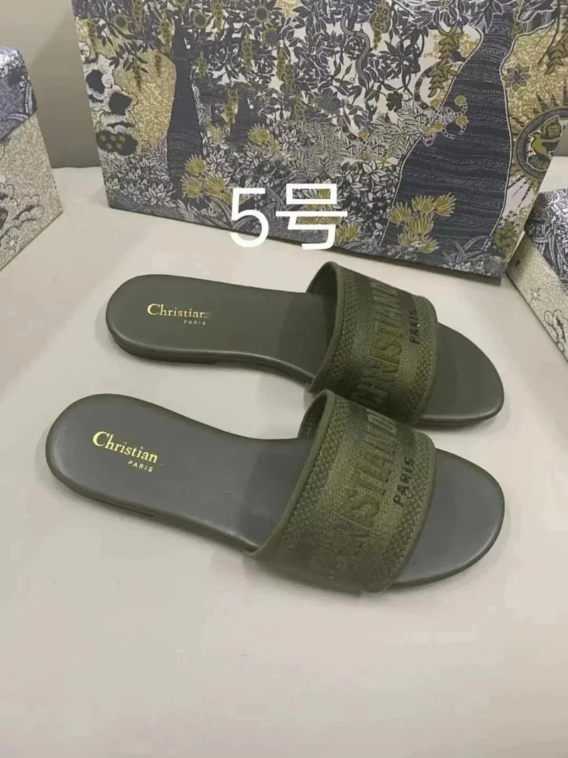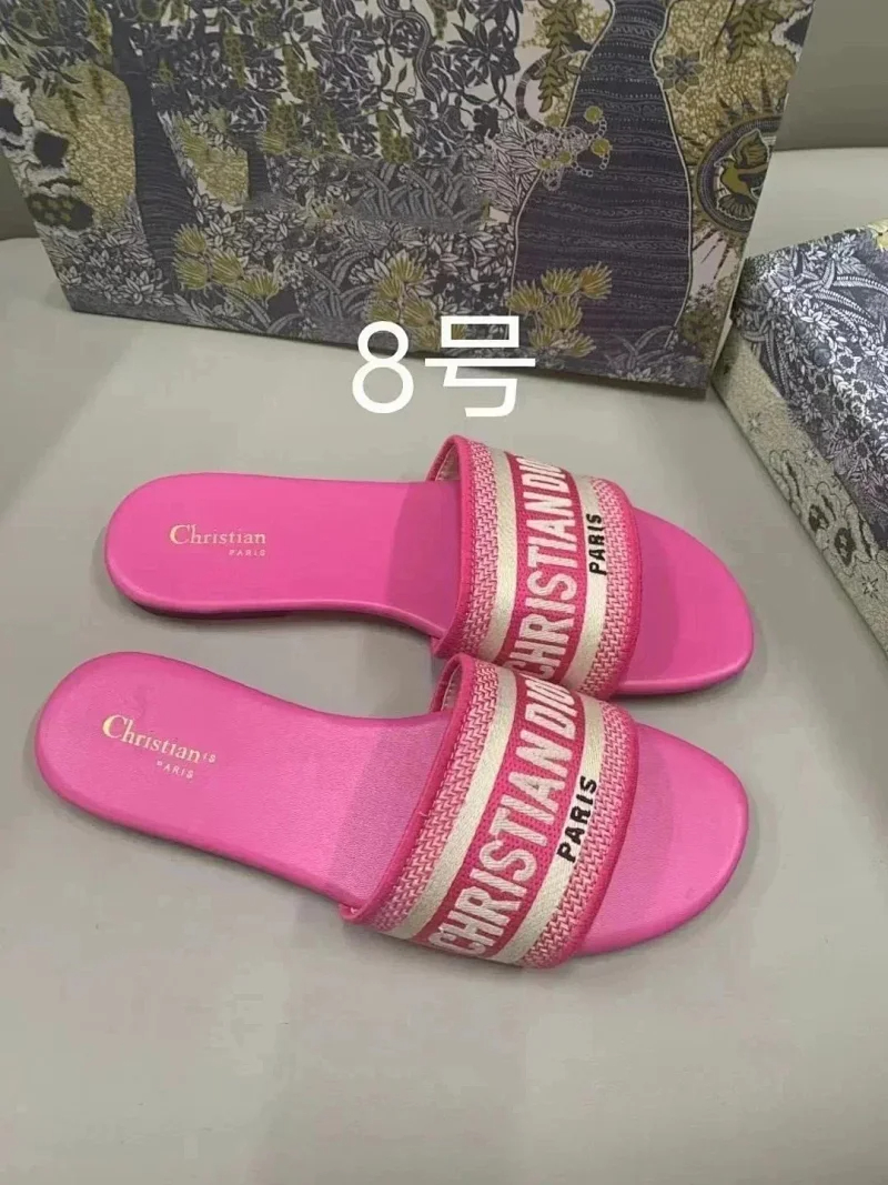 Home > Dior 2025 new summer genuine leather letter embroidered outerwear women's slippers-2336