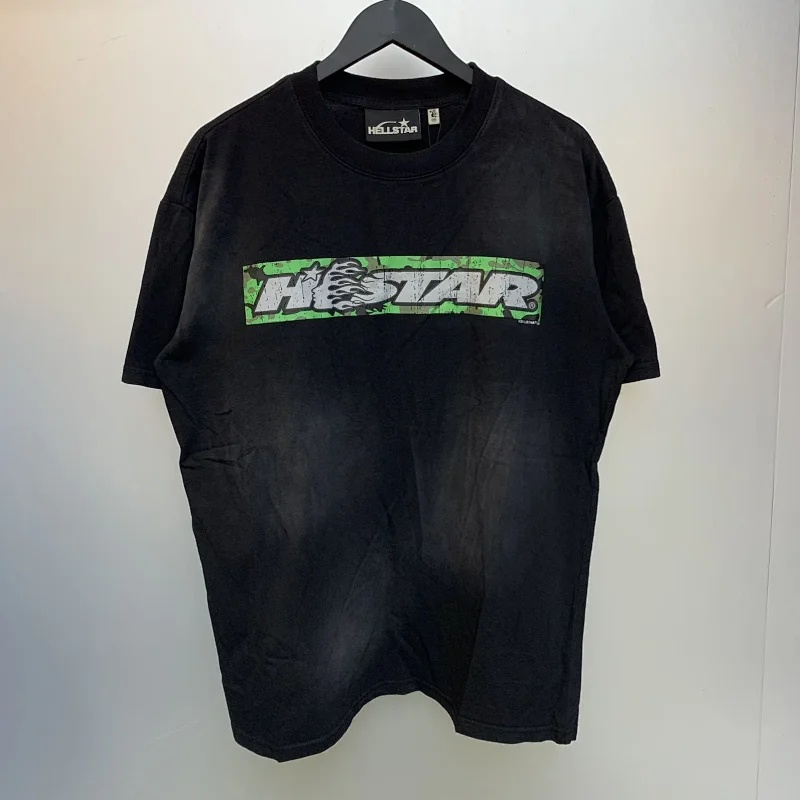 Hell Star Washed couple trendy letters T-shirts-1633