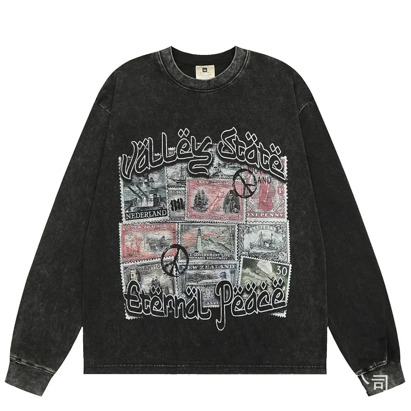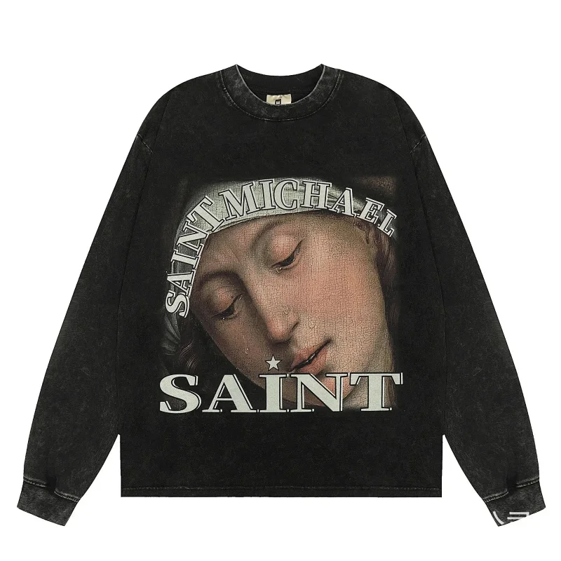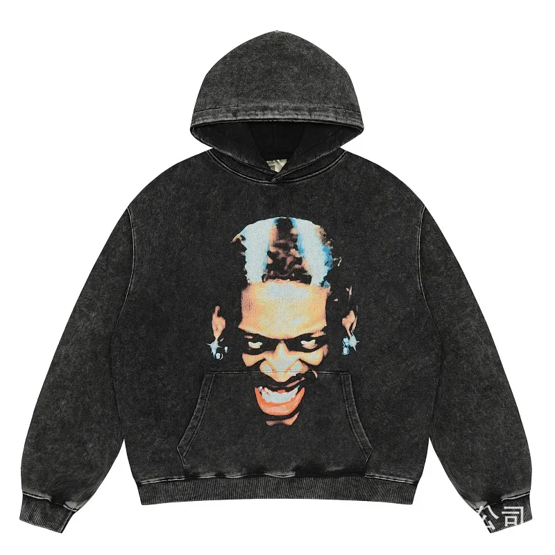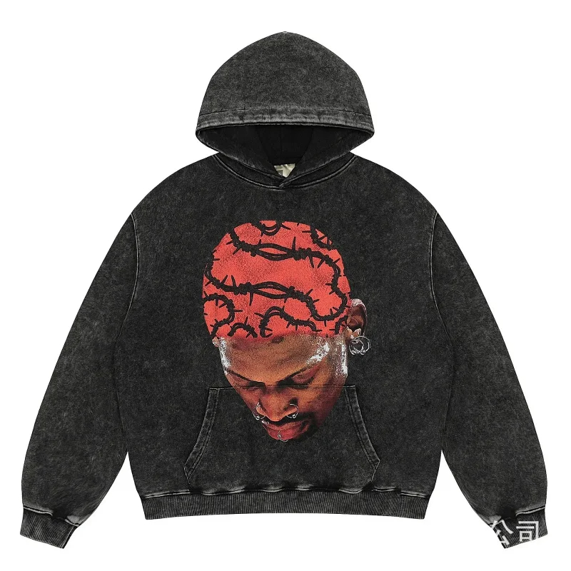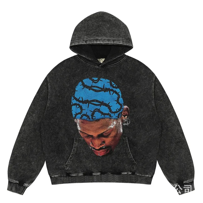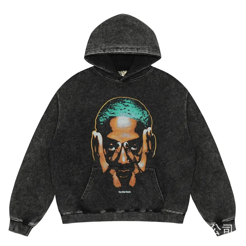 KANYE I told you the same retro washed and distressed hooded sweatshirt with prints Kanye West(39 styles)-2142