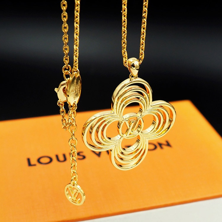 Louis Vuitton LV Floral Round Flower Hollow Metal Wire Outline Necklace-3571