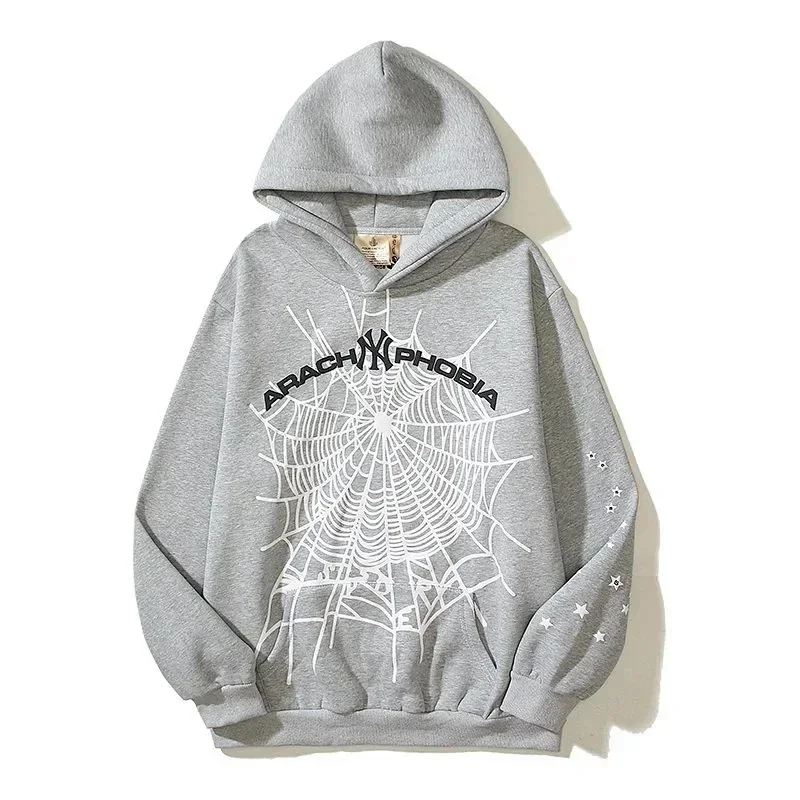 Sp5der Navy Phobia NY spider web print hoodie-2112