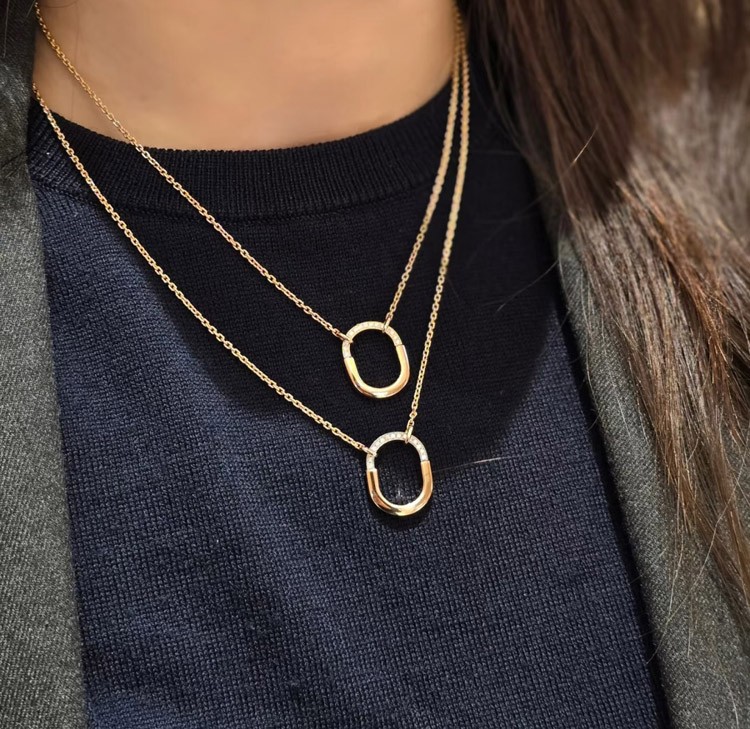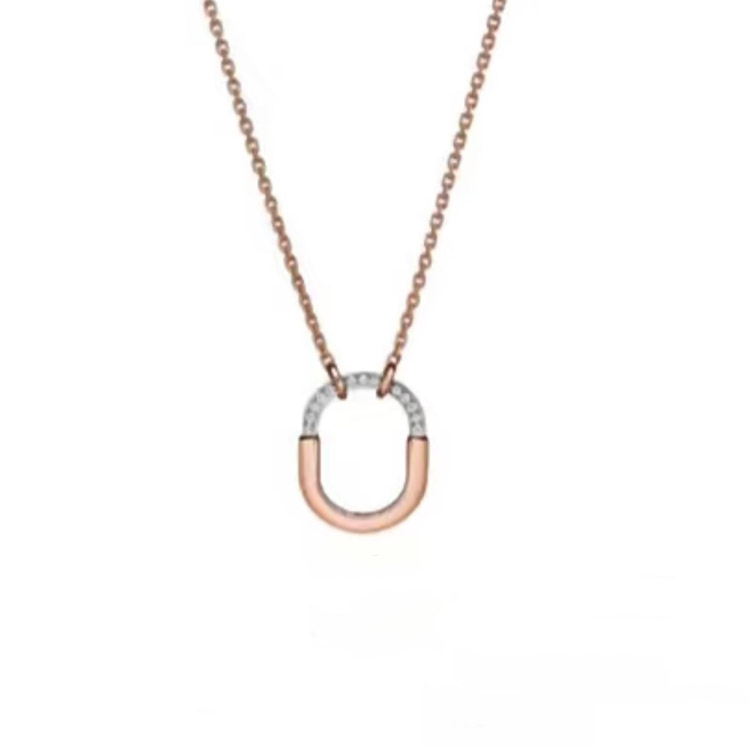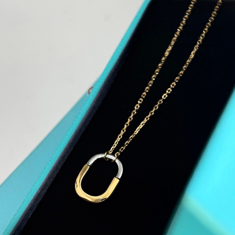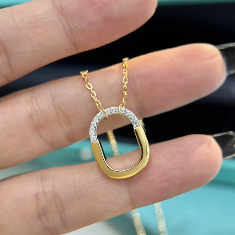 Tiffany mini U-shaped lock half diamond two-tone necklace-3962