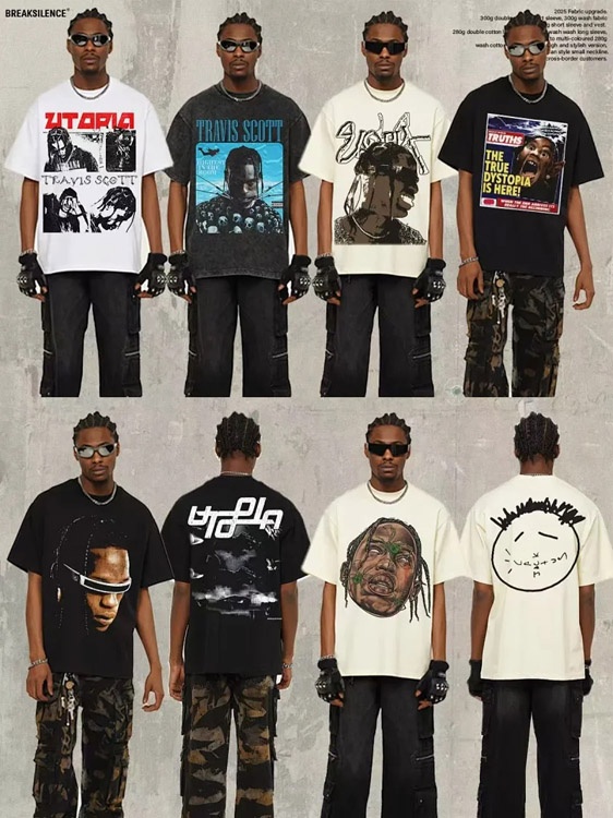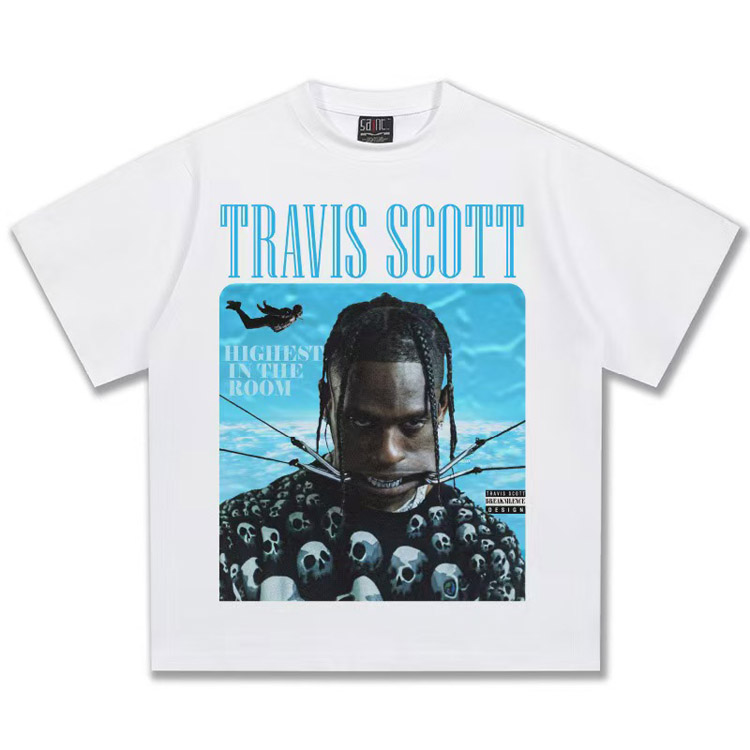 Travis Scott Vintage Pure Cotton Double-Yarn Short-Sleeved T-shirt-5097