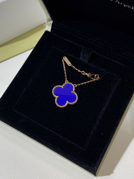 Home > Van Cleef & Arpels four-leaf clover gold blue obsidian wide necklace-3791