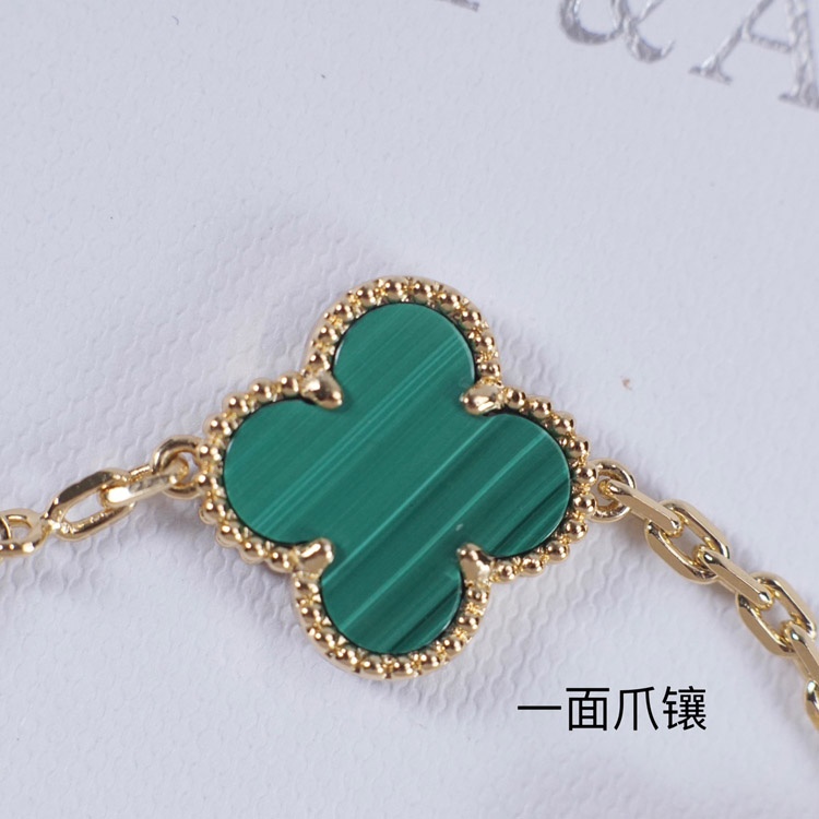 Van Cleef & Arpels inlaid diamond malachite green flower white and black five flower bracelet-3699