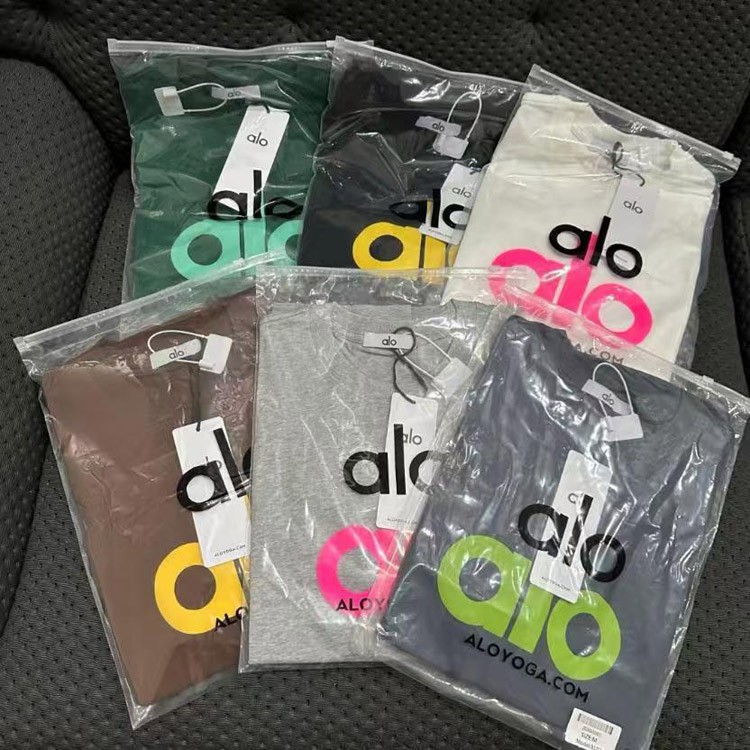 ALO Foamed Letter Hot Stamped Silver Short-Sleeved Crew Neck T-Shirt-5096