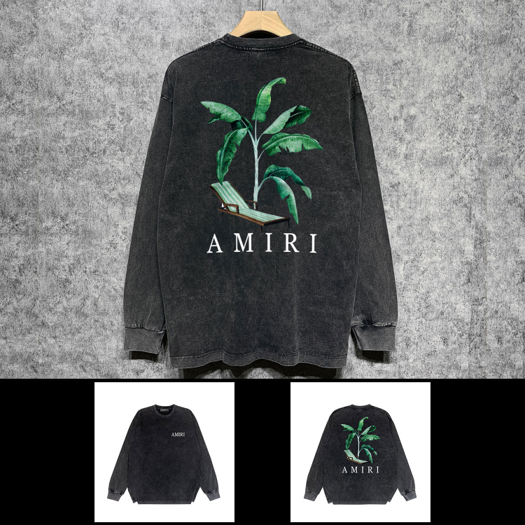Home > AMIRI Washed Distressed Print Casual Long-Sleeve T-Shirt-5520