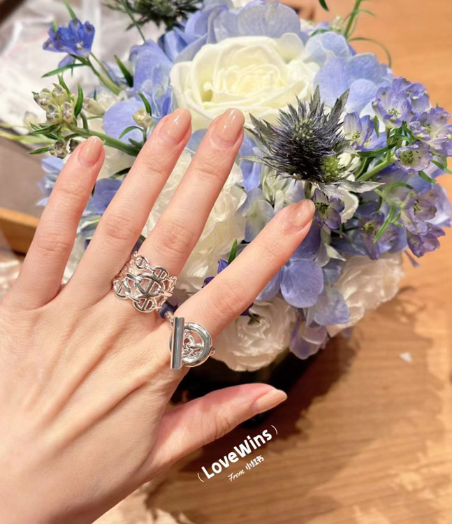 Hermes pig nose three-layer chain sterling silver open ring-3713