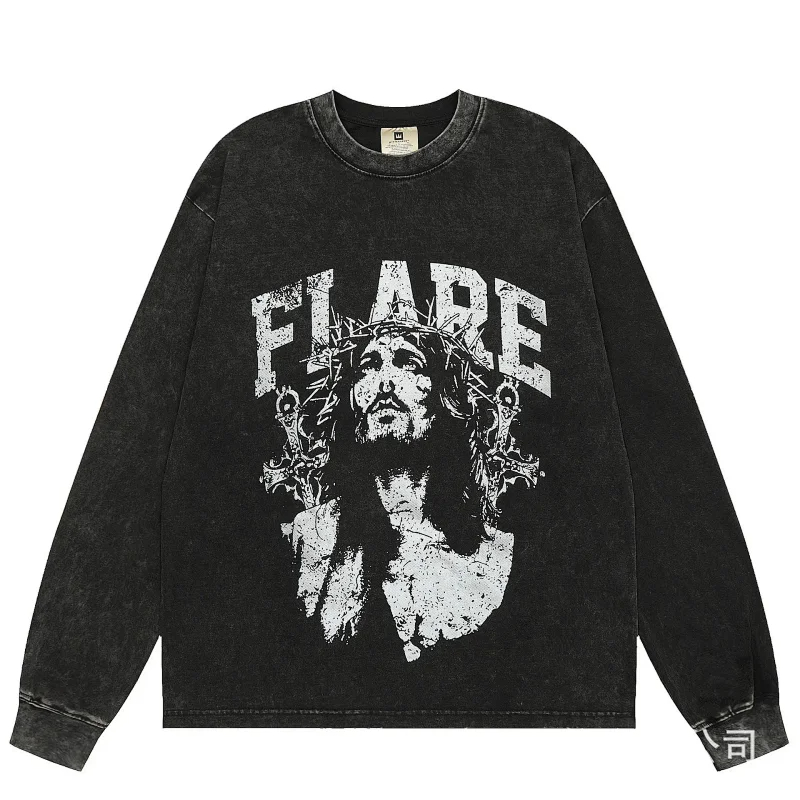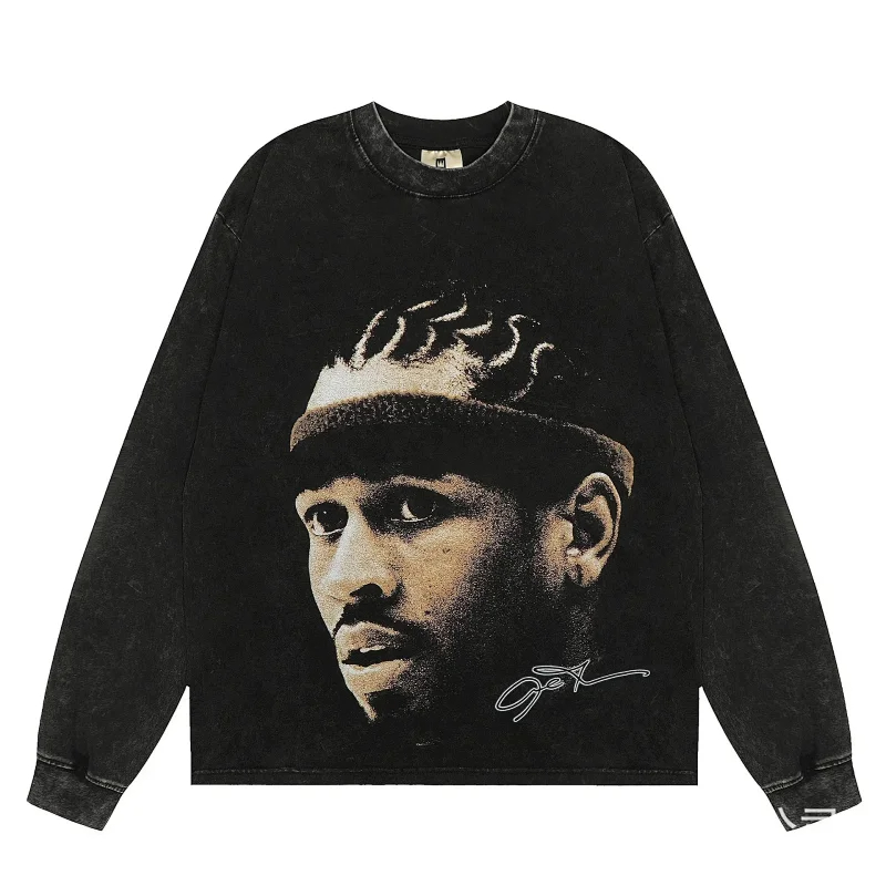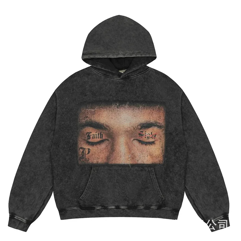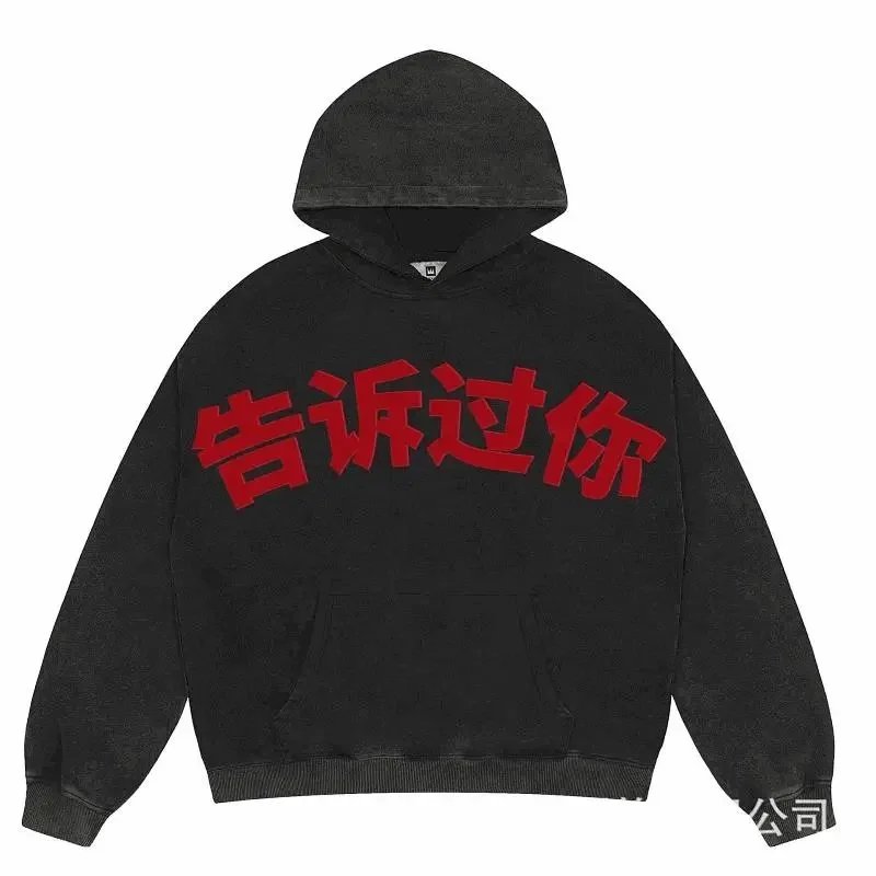 KANYE I told you the same retro washed and distressed hooded sweatshirt with prints Kanye West(39 styles)-2142