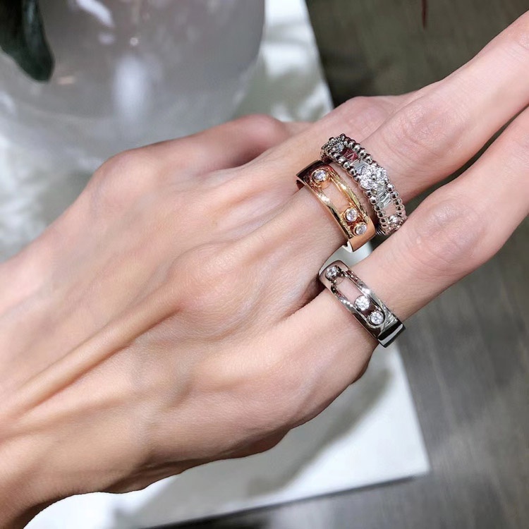 Messika Pave Diamond Ring Gold Hollow Ring Sliding Ring-3570