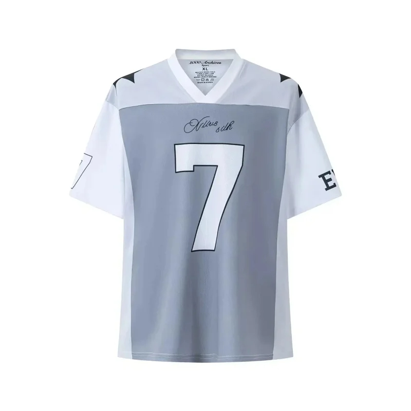 Spliced ​​letter print short-sleeved T-shirt digital mesh sports jersey-1908
