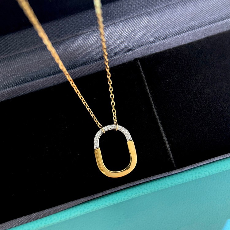 Tiffany mini U-shaped lock half diamond two-tone necklace-3962