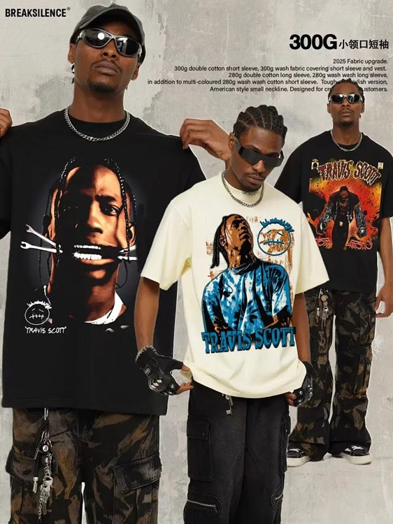 Travis Scott Vintage Pure Cotton Double-Yarn Short-Sleeved T-shirt-5097